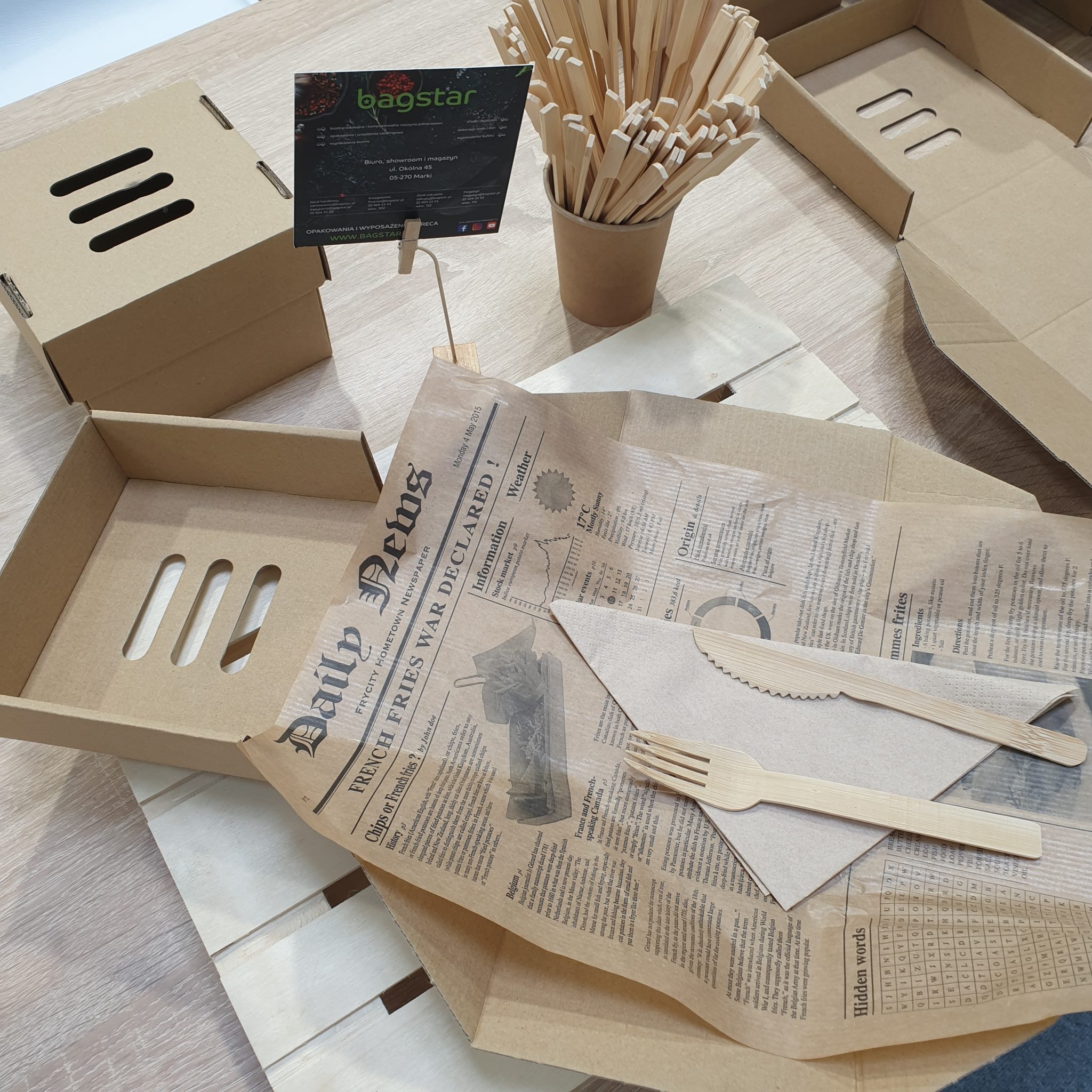 Pudełko burger XXL firmy Bagstar – wykonane z grubego kartonu, z otworami, które ułatwiają odprowadzanie pary, a samo pudełko można rozłożyć i korzystać z niego, jak z talerza.