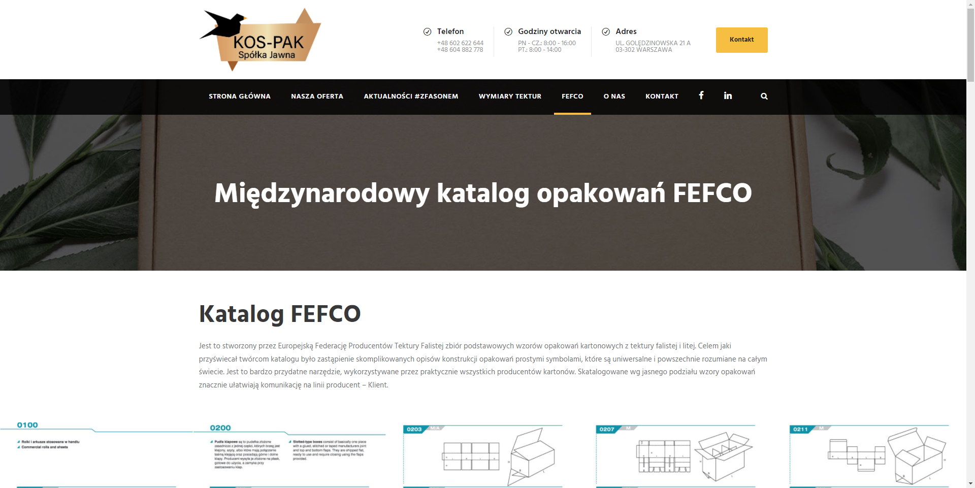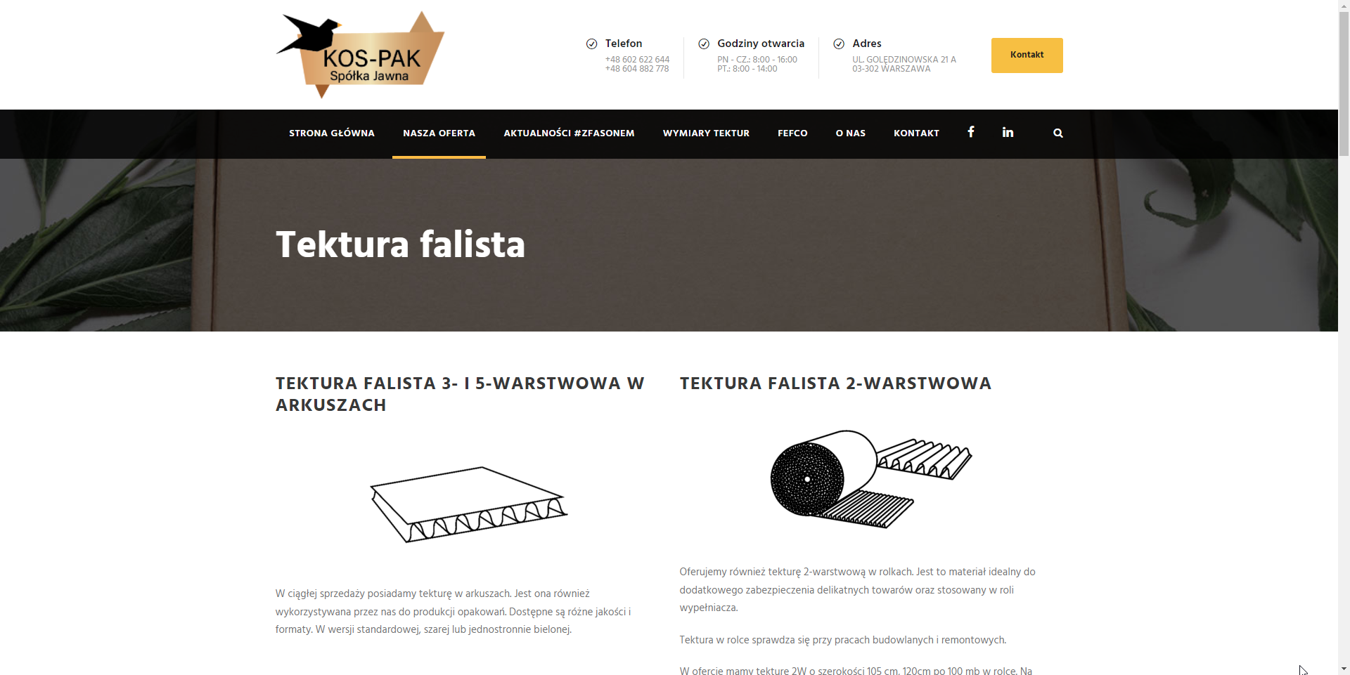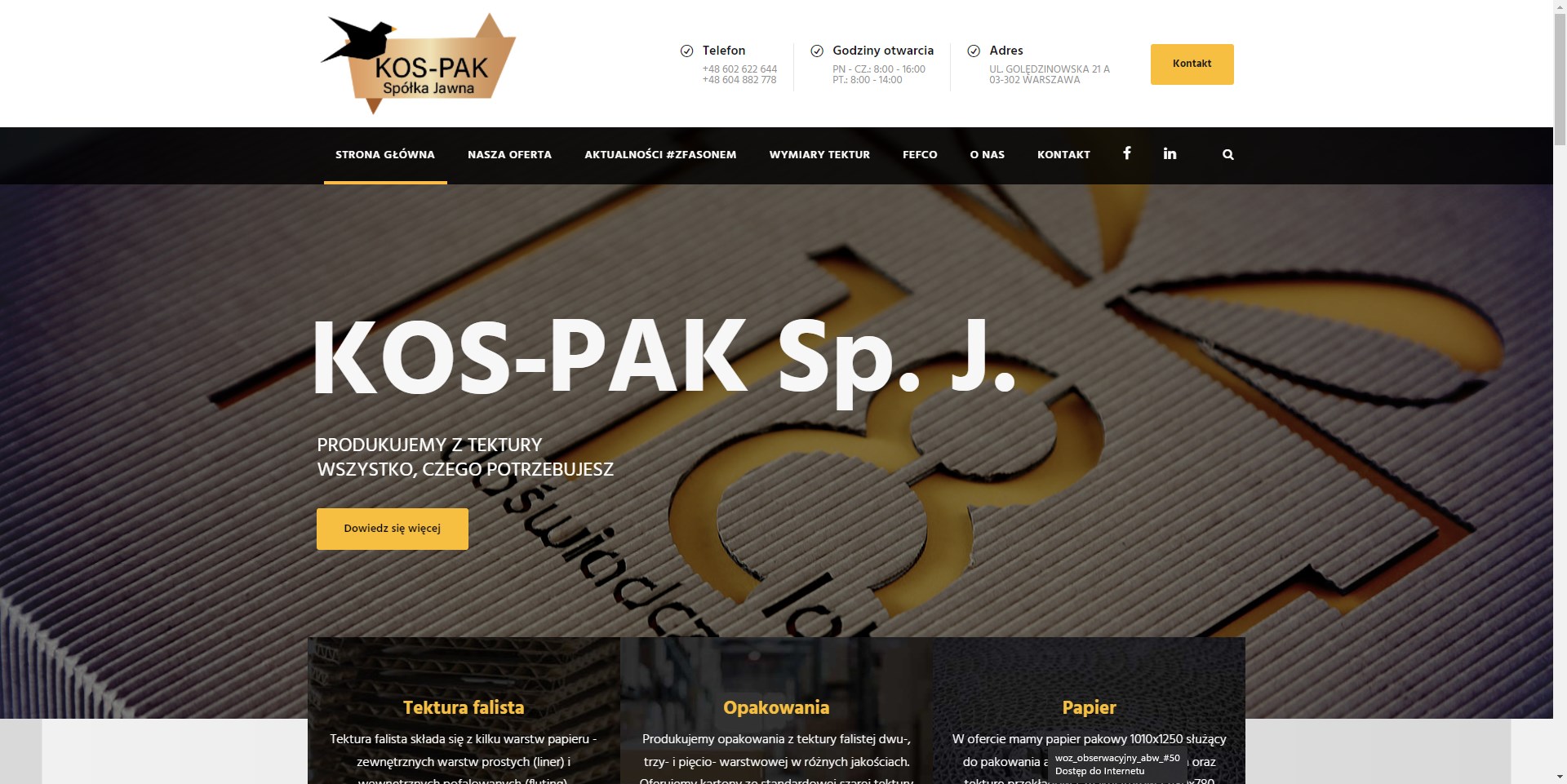 Przygotowanie nowej strony producenta opakowań Kos-Pak. Czas realizacji 3 tygodnie.